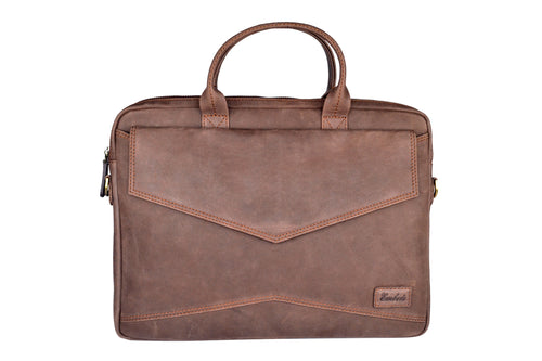 Embee's Classic Brown Genuine Leather Satchel Tablet Sleeve and Laptop Sleeve for all 14 Inch Laptops- MacBook Air Laptop Sleeve